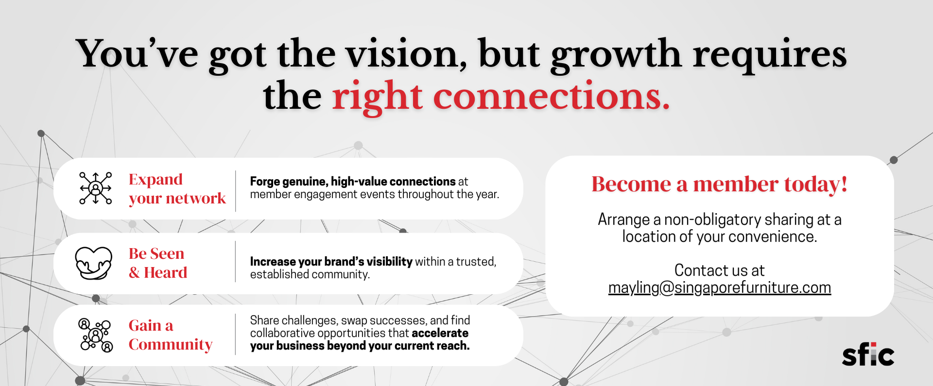 Our Membership Clusters Manufacturing Contract Manufacturing Retail MEMBERSHIP DIRECTORYBUSINESS MATCHING Materials, Components & Services Design Join Membership Featured Members EDLJarrod Lim Design Pte LtdSungei Emas Pte Ltd1 Heart Agency Pte LtdKoda LtdKoncept Kreation Pte LtdCheng Meng Furniture Co Pte LtdCommune Lifestyle Pte LtdAdmira Pte LtdEwins Pte LtdExcel Hardware Pte LtdC&R Interiors Pte Ltd